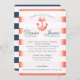 Fet korall och marin blå rand-klassiskt bröllop med nautiska ankare. Anpassa texten efter behov.