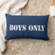 Beställnings- modern och moderiktig blått och vitlumbaren eller dekorativ kudde eller dämpar. En sida har marinblå bakgrund med "pojkar endast" i vittext, och marinblått och vit görar randig på andra sidan. Denna samtidaa design är underbar för pojke-, manar-, tonåring- eller vuxensovrum, dorms, fartyg, strandhus, helgdaghus eller skjul eller mangrottor.