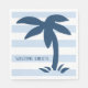Söt pappra blöjor med stencid handflatan träd och blå och vit rand. Ordalydelsen lyder "Välkomsthavare". Snyggt för dina sommarsammankomster. Underbar med kustköksdekan.