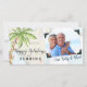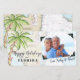 Nautical Boutique Co.s nautiska Happy Holidays från Florida julkort är tillbaka i år med en fräsch design! Designen visar en handmålad akvarellpalmer -- dekorerad i Florida-stil med vita ljusslingor och små röda prydnader -- elegant, handskriven text och ditt favorit familjefoto, selfie eller till och med ett foto på ditt husdjur. Oavsett vilket foto du väljer har det retroinspirerade fotohörn, precis som om det hade klistrats in i ett fotoalbum på kortet. Bakgrunden och baksidan visar det autentiska nautiska navigationsdiagrammet för södra Florida. Baksidan är också daterad. #NauticalHolidays #CoastalChristmas #Florida