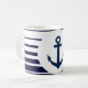 Nautiskt ankare mugg med marinblått och vitt rand. Utformning av havstema för strandhem eller nautiska party. Cute-gåva till sjömän och segelentusiaster.