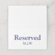 Nautiskt ankarplatskort för marin blå och vit anpassningsbar reserverat Bröllop bord. Anpassade namn och initialer i monogram