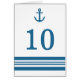 Elegant- och klassiskt Nautical Anchor-Bordsnummer-kort med enkelt båtankare och en uppsättning rand i mörkens marinblått och vitt. Det är enkelt att anpassa det här sjöstrandkortet bröllop bord med dina uppgifter om bröllop. Om du vill ha fler anpassningsalternativ klickar du på knappen Anpassa.