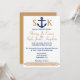 En nautisk themed bröllopinbjudan i marin och solbränna. Arbeten väller fram med ett strandtema för! En ankra är upptill av inbjudan, med den brud- och brudgum initialer på antingen sida. Längst ner flätad repdesign för solbränna är färgaden. Baksidaen är en fast solbränna med en marin ankrar i tränga någon.