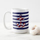 Denna kaffemugg är flott, och innegrejen med marin- och vitrandar och rött och görad randig vit ankrar. Tillfoga ditt namn för att personifiera, om önskat.
