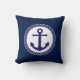 Nautiskt ankra marinblå vit kudde