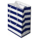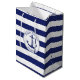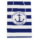 Denna nautiska themed gåva hänger lös har ett marinblått att ankra med en cirkulärrepgräns och en marinblå och vit görad randig bakgrund. Marinblå text ovanför ankra läser "grattis på födelsedagen". Nedanför text är ett namn för att dig ska personifiera.