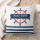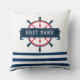 Nautiskt båthjul, marint blått Rand Kudde