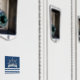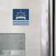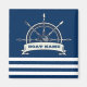 Den här bilden har ett båthjul på en marin blå, strimlad bakgrund. Den här söta designen gör att du kan ta en liten bit stil och färskhet från sommaren.
