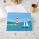 Nautiskt blått hav, fyr, segelbåt Bröllop Gästböcker