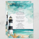 Vacker meny bröllop med sjösvart och vit fyr, stjärnfisk och snäckor. Perfekt för ett bröllop. Ord kan ändras till kostym med dina egna uppgifter eller krav