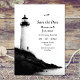 Vi presenterar vårt "Kustfyr i Nautical Lighthouse Bröllop spara datum" i svartvitt - ett häpnadsväckande meddelande för det kommande firande. Med en klassisk fyr-design fångar det här spara-till-datum-kortet den fina skönheten i kusten samtidigt som det bibehåller ett tidlöst, minimalistiskt svart- och vitt estetiskt. Perfekt för nautiskt eller strandtemat bröllop, det anger tonen för ett romantiskt arrangemang för haverering och ser till att dina gäster markerar sina kalendrar för din speciella dag.