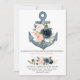 Enkel och elegant nautisk inbjudan med vattenfärgsfärgade blommigtar och subtila accenter från guld.