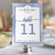 Nautiskt marin stålblått akvarell-hustruväktarbröl bordsnummer