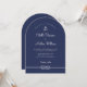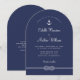 Modernt nautiskt marinblått med ankare och knutet rep och modern typsnittsbröllopsinbjudan med QR-kod för RSVP och detaljer.