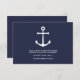 Detta mottagningskort har en illustration av vitt ankare med detaljer i vit modern sans serif-teckensnitt på marinblå bakgrund.