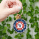 Nautiskt monogram - blå ankarplatta rund silverfärgad nyckelring