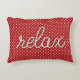 "Slappna av" text i nautisk rep på vit polka dots och röd kolvstygn. Kort sömnad återges digitalt.