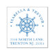Det moderna nautiska temat bläck frimärke. Frimärke har en nautisk frakt i stil i vintagen, omgiven av namn i bruden och groomen och ett utsänt adress under.
