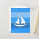 Nautiskt tema design med segelbåtsdekoration på randig blå och grå träbakgrund. Observera att detta inte är tillverkat av trä, det är ett tryck med trästruktur.