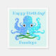 Det här är den kutaste lilla akvariefläckiga bläckfisk som du någonsin har sett är två nyanser av havets blått med grönt sjögräs och ord grattis på födelsedagen i matchande blått. Namn är en mall som du kan byta till en egen och du kan välja en egen bakgrund färg. Perfekt för ett barns födelsedag #nautical #underthesea