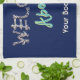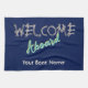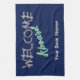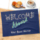 I snyggt marin blått innehåller den här chicen kökshandduk ett välkomstmeddelande med ett coola-reffektsskript och ett elegant-akvasskript. Anpassa med båtens namn för en individuell blomning. Perfekt för botande entusiaster, segelörer för yacht eller för någon som söker sig till köket eller köket.
