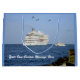 På port Canaveral, passerar Florida, ett inbound charterfartyg by på styrbordsidan av den outbound kryssningfraktnavigatören, som pelikan flyger uppe i luften.