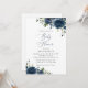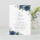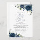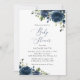 Navy Blåa blommor, Greenery, Boho, Baby Shower Inbjudningar