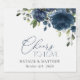 Lägg till en personlig beröring till bröllop firande med dessa snyggtar och minnesvärda party! Utformningen har marina blå vattenfärgblommor och grönt mot vit bakgrund.