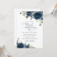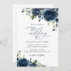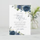 Navy Blåa blommor, Greenery, Boho, Blommigt Bröllo Inbjudningar