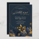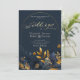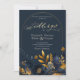 Navy Blåa blommor Guld Löv Bröllop Inbjudningar
