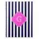 Navy Blu White Rand Shock rosa Quatrefoil Monogram Anteckningsbok Med Spiral