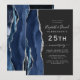 Navy Blue Agate Silver Dark 25th Anniversary Inbjudningar