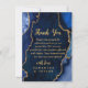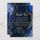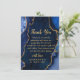 Make a bold and elegant statement of gratitude with this navy blue and gold agate marble thank you design. Featuring rich jewel tones, organic stone textures, and shimmering gold accents, this design is perfect for couples who want to extend the luxury of their celebration beyond the wedding day. Deep midnight blue hues paired with metallic gold detailing create a dramatic yet refined aesthetic, ideal for formal, modern, or glamorous fall and winter weddings. Fully customizable to reflect your names and message, this agate-inspired thank you card adds timeless sophistication to your post-wedding correspondence.