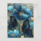 Navy Blue and Gold Butterfly with Teal Flower Vykort