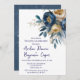 Navy Blue and Gold Peony Wedding Celebration Inbjudningar