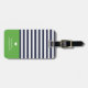 Snyggtens anpassningsbar tryckte resetagg i grönt, marinblått och vitt färg. Den här designen har en klassisk flotta och vit stripe-mönster. Anpassa den med ditt namn monogram eller annan anpassningsbar med en söt hjärtsymbol. Lägg till din kontaktinformation på baksidan i fodral. Ditt bagage är borttappad under resan. Använda designen verktyg om du vill välja valfritt färg, redigera texten typsnitt och färg och ladda upp dina egna foton för att skapa en unik bagagetagg av typen monogrammed.