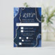 Make a bold and elegant first impression with this navy blue and silver agate marble RSVP card, featuring rich jewel tones, organic stone textures, and shimmering silver accents perfect for fall and winter celebrations. This design includes customizable text boxes and meal selection checkboxes, allowing your guests to indicate their preferences. The default options are beef, chicken, or vegetarian, but these can be easily changed to suit your event. The deep midnight blue hues paired with metallic silver detailing create a dramatic yet refined look ideal for a wedding RSVP, birthday RSVP, or Sweet Sixteen RSVP with a formal, modern, or glamorous aesthetic. Inspired by natural agate and geode patterns, this luxurious design coordinates beautifully with upscale seasonal events and is fully editable to match your details, adding timeless sophistication to autumn and winter celebrations alike.