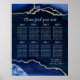 Navy Blue and Silver Agate Wedding Seating Chart Poster