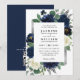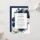 Navy Blue and Silver Floral QR Code Wedding Inbjudningar
