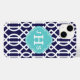 Navy Blue and Turcos Modern Trellis Monogram