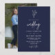 Navy Blue Boho Minimalist Botanicals Photo Bröllop Inbjudningar