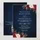 Navy Blue Burgundy Red Floral QR Code Wedding Inbjudningar
