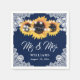 Navy Blue Burlap Floral Lace Sunflower Wedding Pappersservett
