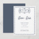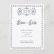 Navy Blue Crest Monogram Wedding Save the Date Meddelande Vykort