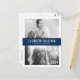 Bjud in familj och vänner till din händelse med denna anpassningsbara då och nu tema foto examens inbjudan postkort. Den har enkel typografi och en marinblå stapel accent. Anpassa detta nu och då foto examens inbjudan postkort genom att lägga till dina egna detaljer. Detta marinblå foto examens postkort är perfekt för högstadiet och universitetsexamina.