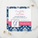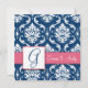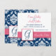 Spara datum-kort med navblått och vitt damastmönster, monograminitialer, namn med kaprifol-rosa accentfärg. Inbjudningsdesign av Elke Clarke ©2009. Grafik licensierad för användning. Anpassa med ditt monogram, namn och information om bröllopsinbjudan. Välj också mellan en mängd olika typsnitt och vackra papper för att göra dina bröllopsinbjudningar SUPERBA! Kontakta oss för ändringar av färger via butikens kontakt eller på luxuryweddinginvitatins@gmail.com