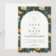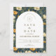 A rich and sophisticated floral design featuring deep navy tones accented with warm golden blooms, framed within a timeless arched layout. The contrast between the dark background and soft ivory center creates a striking, high-end aesthetic that feels both modern and classic.