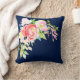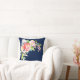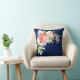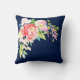 A bold, bright, and splashy watercolor floral image is the feature on both the front and back of this pretty pillow. The image is in colors of coral pink, pale pink, pale yellow and green, with touches of tangerine, blue, and violet. The flower bouquet is at the top left corner against a dark navy blue background. The back of the pillow is identical to the front. *This design uses artwork from www.CreateTheCut.com.