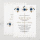 Navy Blue Floral Gold Triplets Boys Baptism Inbjudningar